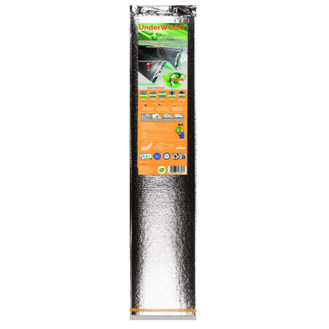 UnderWOOD Professional 5 мм з алюмінієвою мембраною/екраном є ідеальним рішенням для укладання під ламінат і паркетну дошку в житлових та комерційних приміщеннях. Її також можна використовувати як гідроізоляційний і тепловідбивний матеріал для підлоги, стелі та стін. Це робить підкладку універсальним та незамінним продуктом для будь-яких будівельно-ремонтних робіт.
